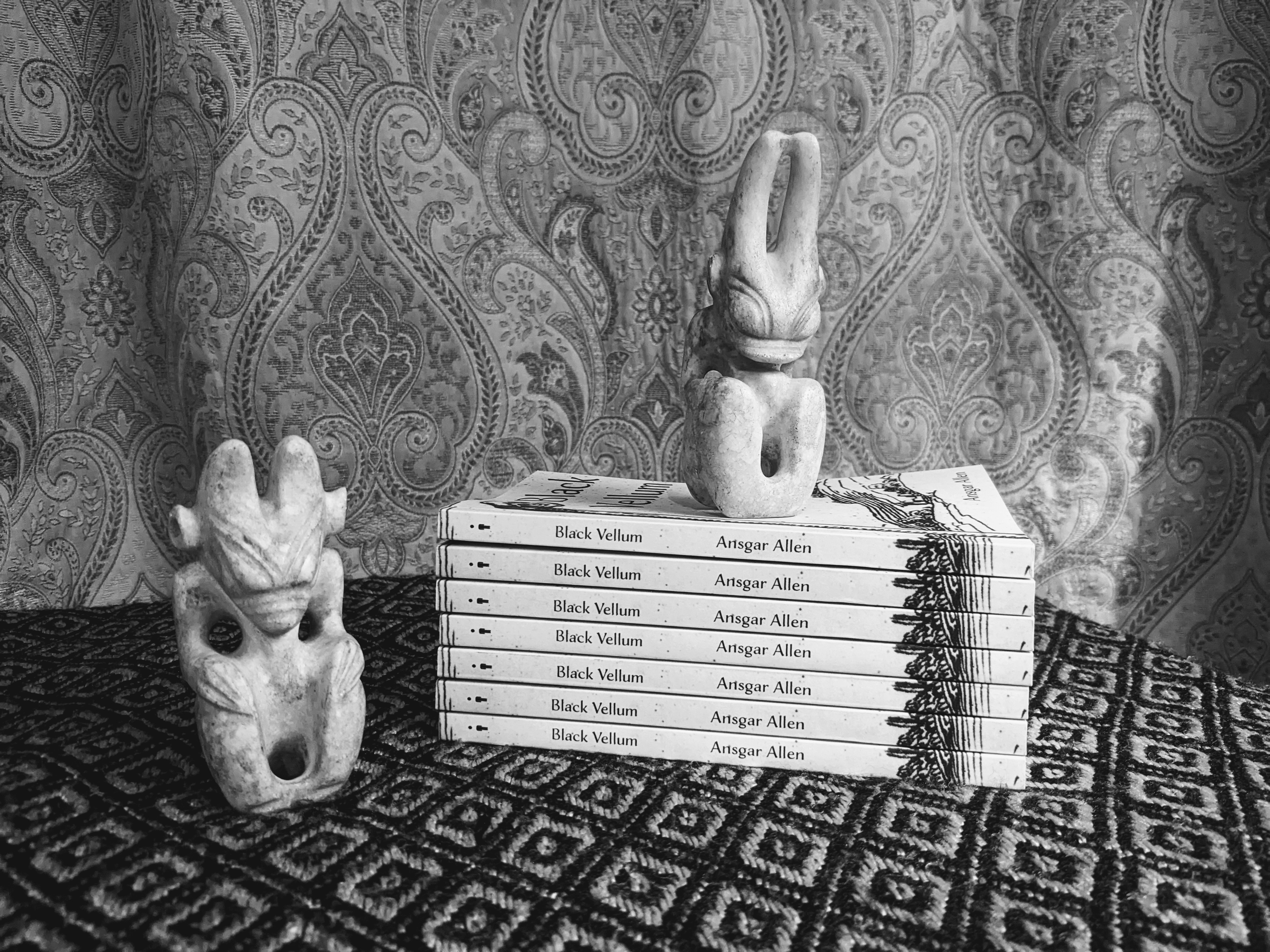 “Black Vellum unspools before the reader like a memory thread with which to weave one’s forgetting of the world, a darkness to navigate the blinding light, a testimony of corporeality that grows and grows and becomes the home of the mind exiled by the body. Within its pages, there are ways of seeing, mechanisms of being, of carrying both oneself and the burdens of the landscape before one’s eyes—the fibers of the world enslaved to its own image and those of what we must weave in its place. Through a rich prose, evocative of the mythological void state in which everything necessary existed all at once, Ansgar Allen creates a mirror-like journal, in the pages of which one can find, beyond a reflection of the self, a recollection of how paths are traveled, and worlds undone.” — Christina Tudor-Sideri