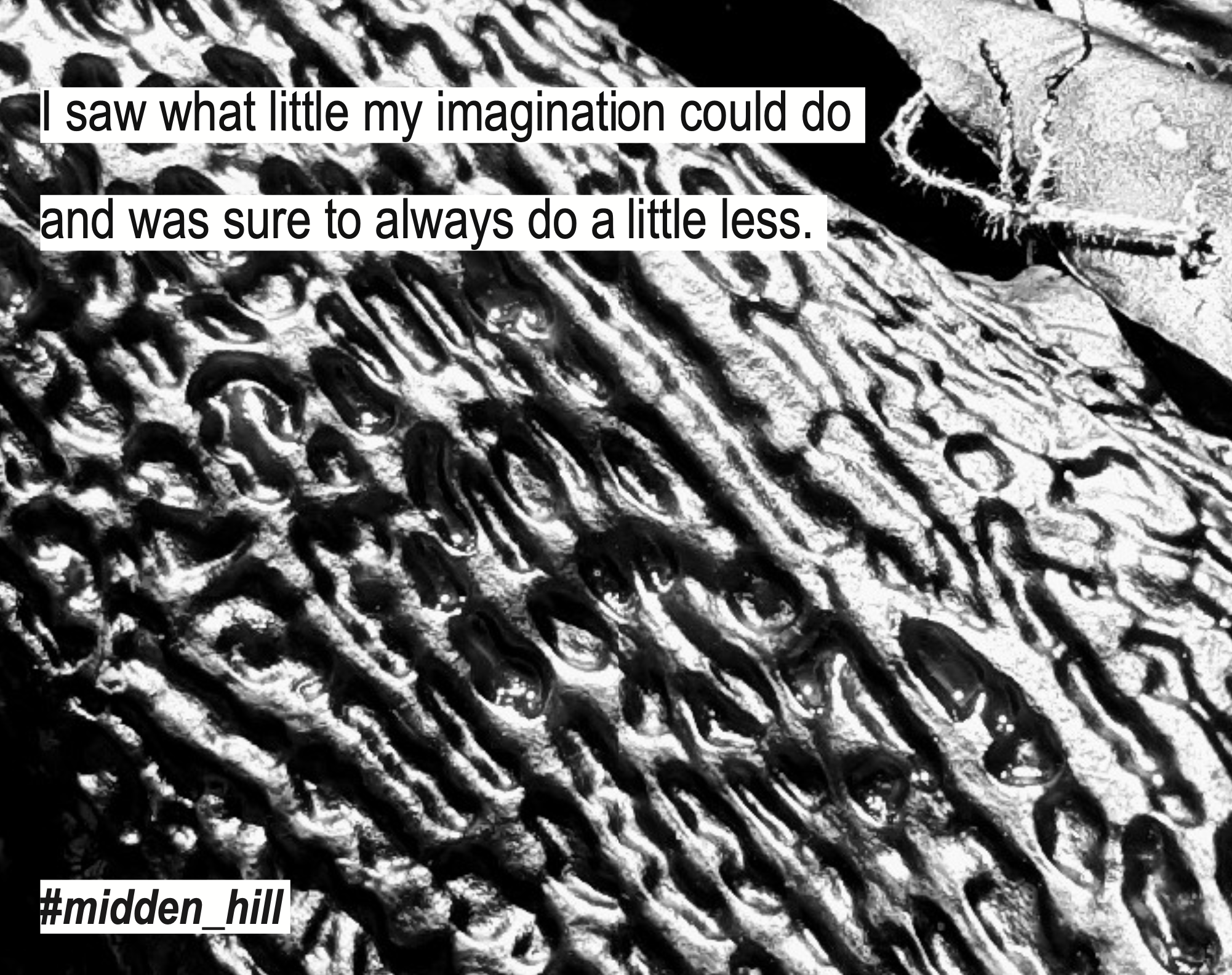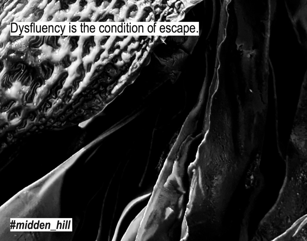 “Unlike straightforward allegory or conventional philosophical treatise, Midden Hill inhabits the zone between narrative, parable, and fragmentary essay. The text stages the experience of thinking as an ordeal: not a progressive journey towards enlightenment but a continual brushing up against obscurity, exhaustion, and the violent enclosures of institutional knowledge. Allen’s narrative centres on an island composed entirely of civilisation’s waste: cultural artifacts, detritus, language fragments, archival trash. Visitors to the island report distorted speech and perception, as if society’s detritus infects cognition… Here, Allen rewrites classical metaphors of knowledge as nourishment (Plato’s dietetics of the soul, Bacon’s digestion of experience) into grotesque corporeal parody. In so doing he provides an arch-archival metaphor: the mind consumes and digests exterior chaos, but only extrudes intellectual sediment… Allen’s prose refuses the consolations of philosophical clarity, but instead makes palpable the exhaustion, violence, and futility at the heart of the pedagogical project, positioning fiction itself as the only form capable of enacting this critique from within.” — David Vichnar