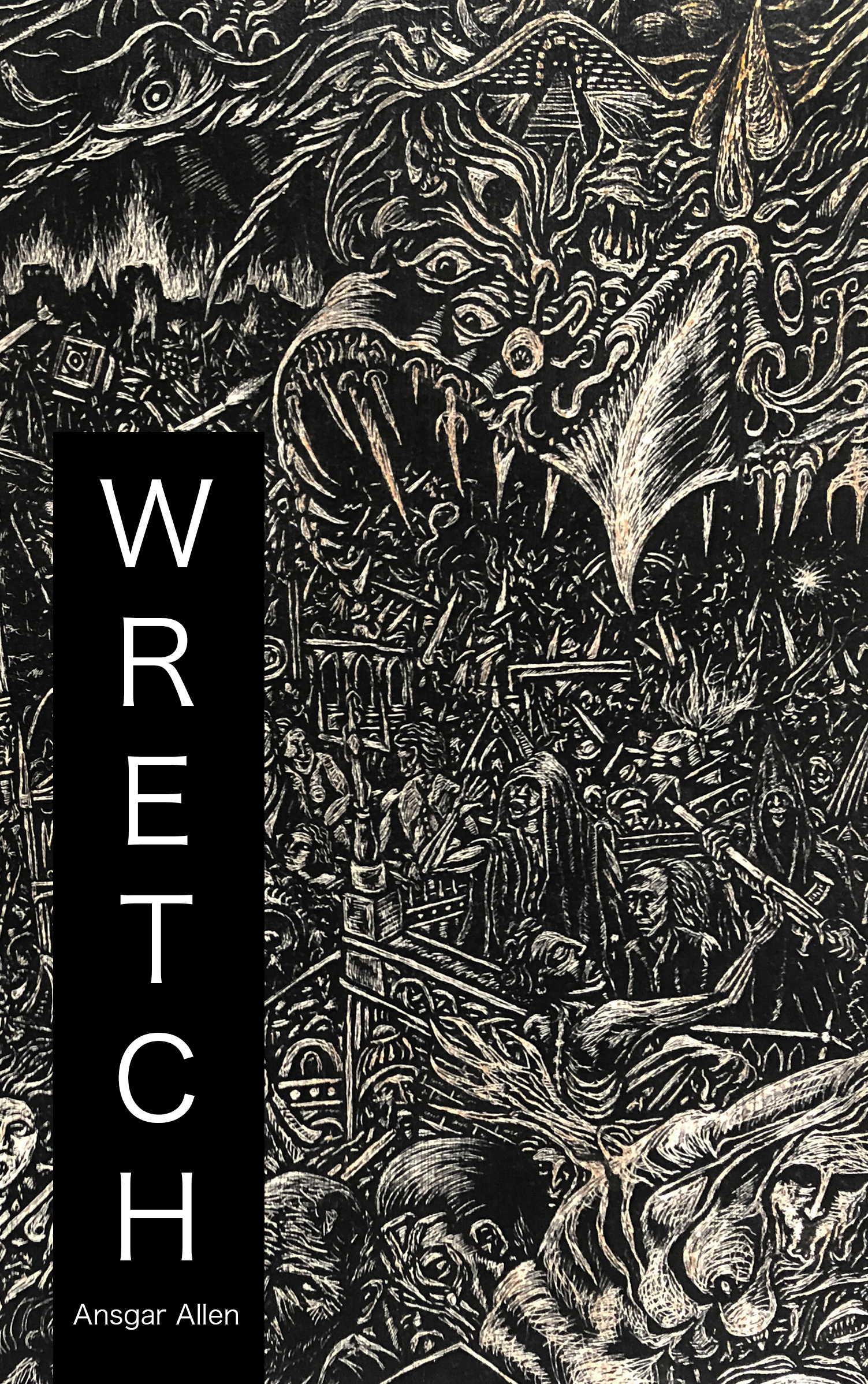 “Pessoa once said: ‘[t]o still not have died is enough for life’s wretches, and to still have hope.’ One of these wretches produced the copy you hold in your hands, and while that might go some way toward explaining this book’s title and thematic, allow me to expand. // Ansgar Allen is an accomplished stylist engaged in a highly structured, critical form of fiction-as-medium (in the manner of Marcel Proust or Marcel Broodthaers, for instance), thus what he has ostensibly given us in Wretch is a stack of found copy (format trouvé) — produced by an entirely unreliable narrator — that bound together constitutes a sort-of-narrative straddling the landscape of reason and its Other; stratifying, accordingly, compulsively, infernal regions and impregnable fortresses. // Less a book than an ‘object-event’ (in the Foucauldian sense), Wretch is a meticulously constructed puzzle of reality and unreality, of psychological and . . . creeping biological horror, relayed by an abject Sisyphean copyist whose conscription in this (alien and alienating) loopy labour largely eludes us, but whose droning prose is at once maddeningly mundane and insanely compelling. // A textual aberration worthy of Schism Neuronics. If you enjoyed B.R. Yeager’s Amygdalatropolis, you’ll love this!” — Edia Connole