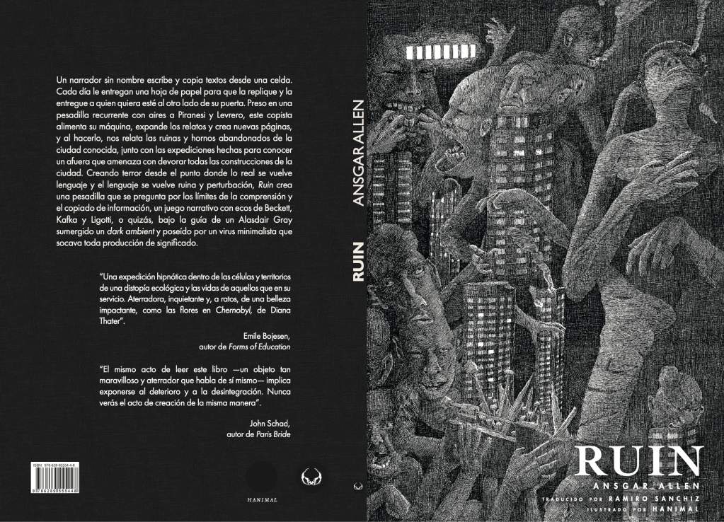 Published as Ruin in Spanish translation by Ediciones Vestigio (Bogotá, Colombia, tr. Ramiro Sanchiz, cover art by Hanimal).